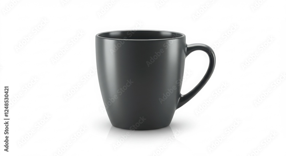 "A high-resolution illustration of a contemporary coffee mug with elegant curves and a smooth surface, rendered on a white background with soft reflections and shadow details."