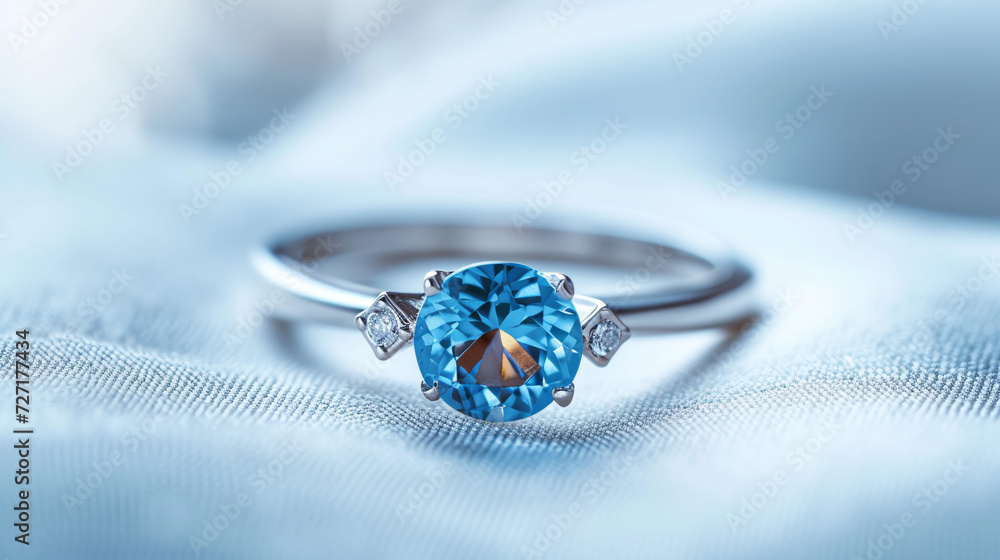 "A Luxurious and Expensive Women's Ring Featuring a Captivating Blue Topaz Gemstone, Isolated on a White Background."