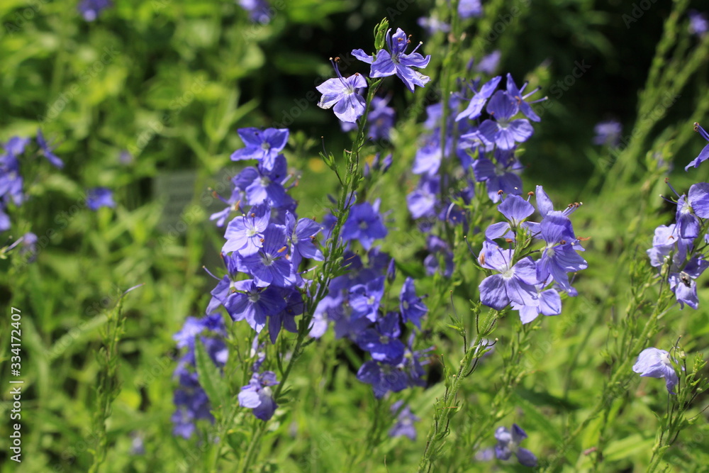 "Broadleaf Speedwell" flowers (or Gamanderartiger Ehrenpreis, Bird's Eye, Gypsyweed) in St. Gallen, Switzerland. Its Latin name is Veronica Teucrium, native to Europe, Siberia and West Asia.