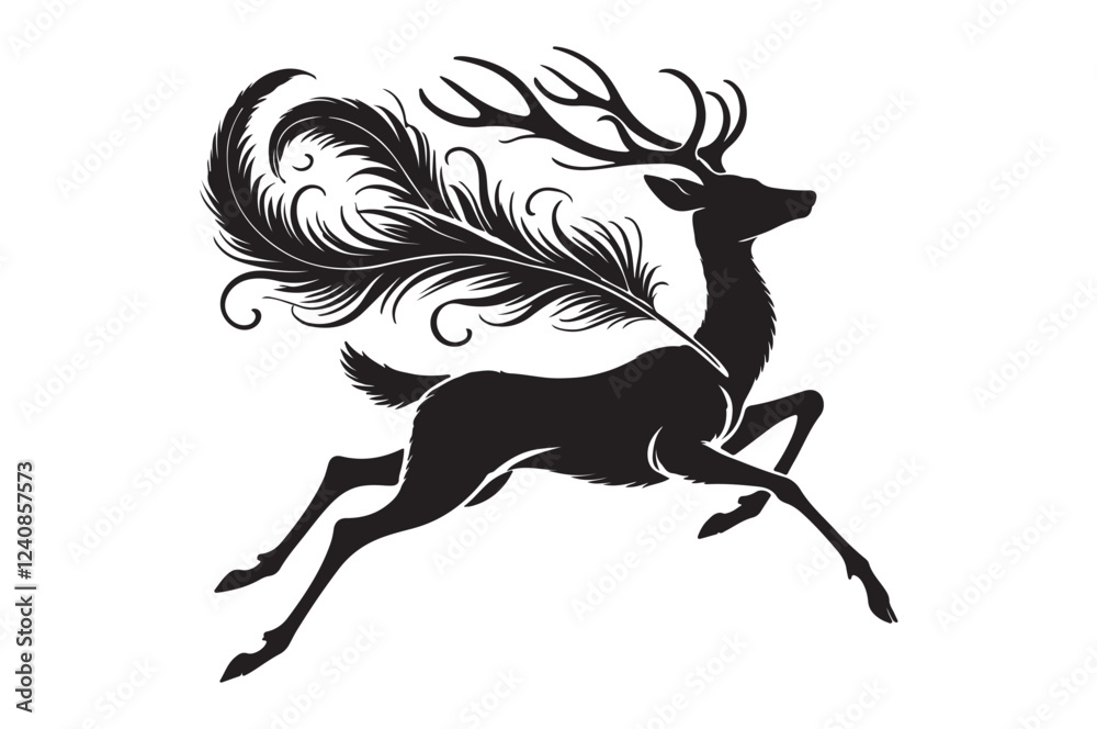"Elegant Deer with Feathered Antlers Silhouette"