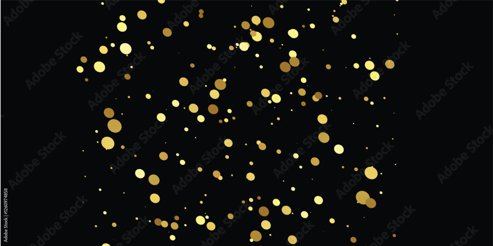"Elegant Golden Glitter Confetti Falling Against a Dark Black Background: A Glamorous and Sparkling Visual for New Year’s Eve Celebration and Brochure Template"