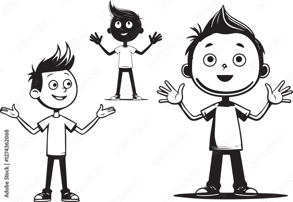 "Expressive Stick Figure Narrator – Black and White Vector"