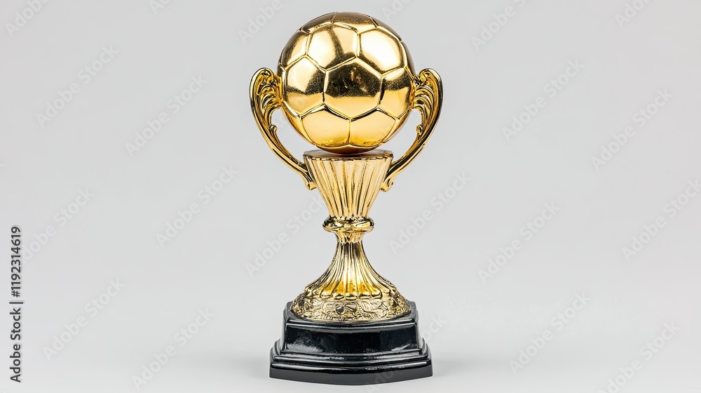 "Gold Soccer Ball Trophy on White Background and Transparent PNG"