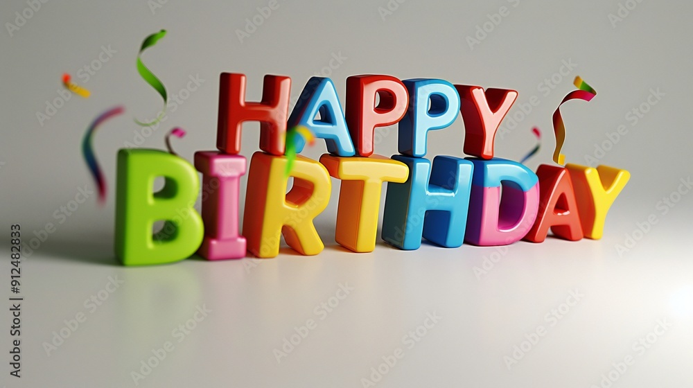 "HAPPY BIRTHDAY" text presented with simplicity and charm on a pristine white background, marking a special occasion