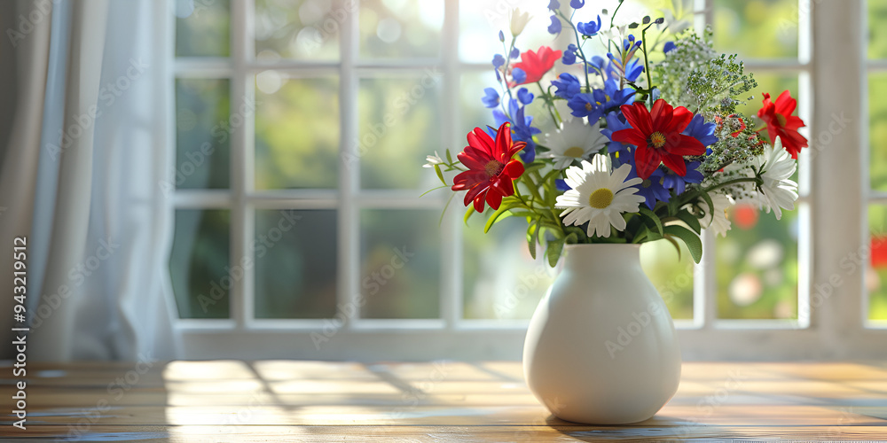 "Sunlit Wildflower Bouquet in a White Vase by the Window"