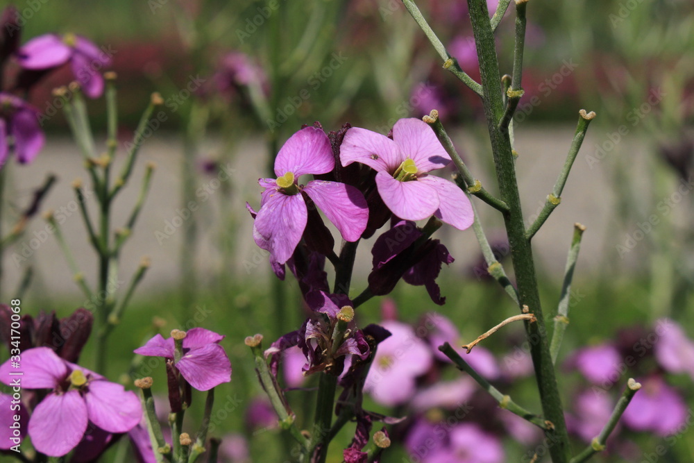 "Wallflower Bowles Mauve" in St. Gallen, Switzerland. Its Latin name is Erysimum Bicolor 'Bowles Mauve', wild variety is native to Madeira, Portugal.