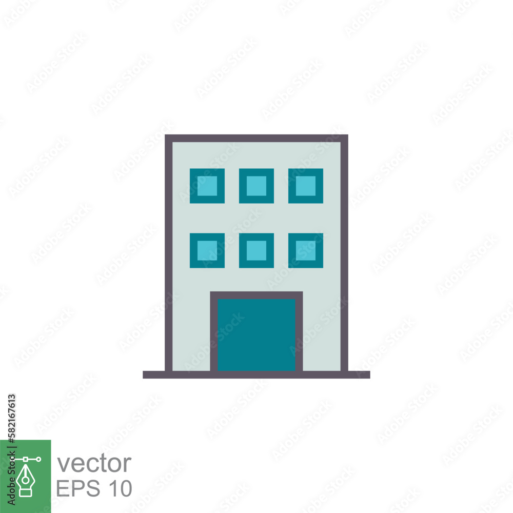 Building icon. Simple flat style. Company office, modern apartment, home, skyscraper, house concept. Filled outline symbol. Vector illustration isolated on white background. EPS 10.
