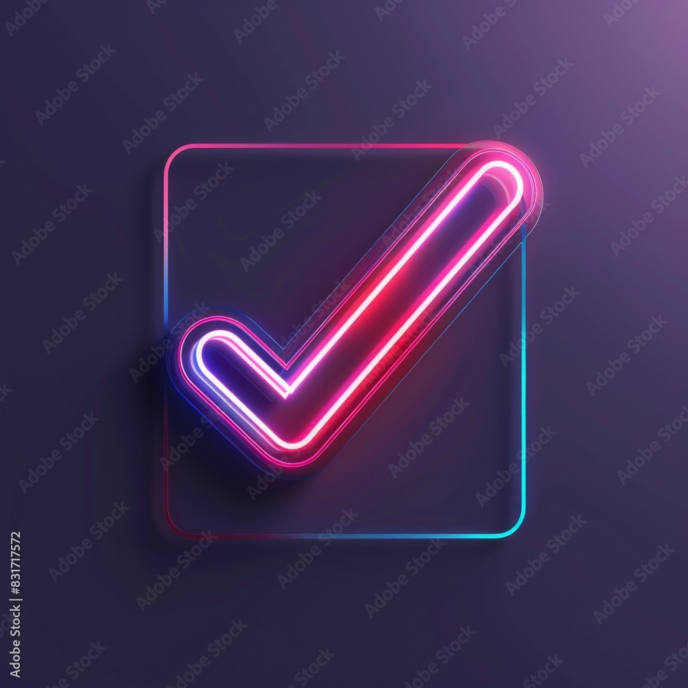 Neon Check Mark Icon Depict a 3D icon of a glowing neon check mark, vibrant for highlighting important approval, AI Generative
